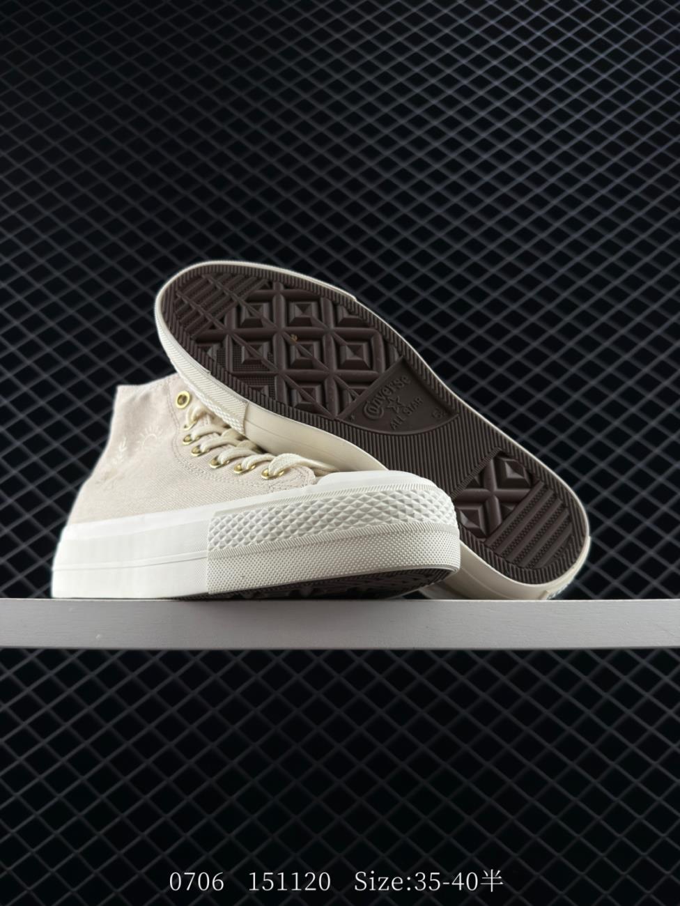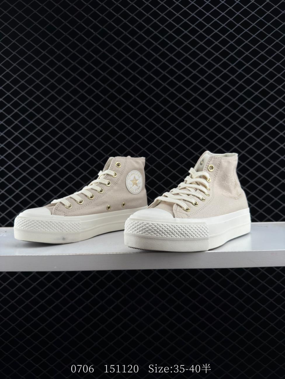 Converse Chuck All Star platinum high top unisex canvas shoes increased height inside white metal lace ho Funny Shoes Sneakers