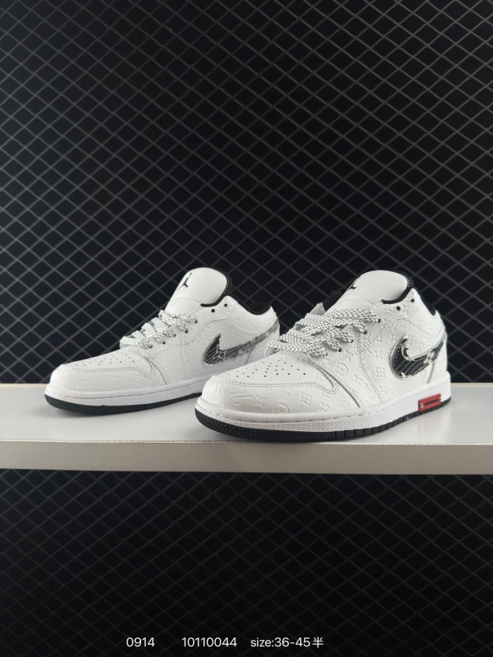 Wholesale Trade Shoes Sneakers Jordan Fragment x Travis Scott x LV Air Jordan 1 Low Three party Joint Inverted Hook Whole Pair Shoes Full Ly