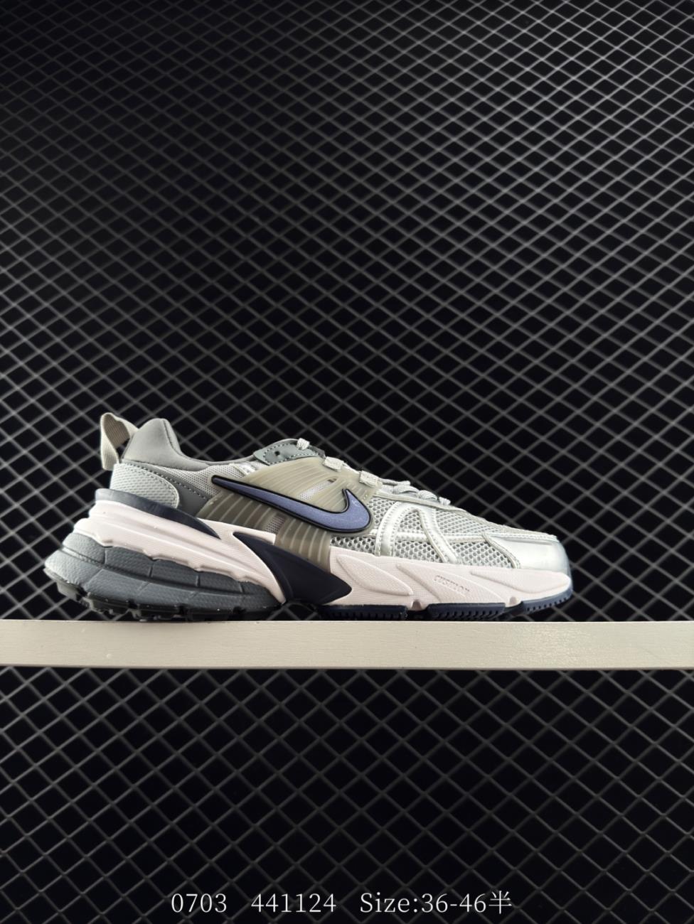Shoes Sneakers Customzie Nike V2K RUN Running Shoes Retro Trend Mesh Breathable Sports Shoes Grey Silver Tight Upper Material Provides Good