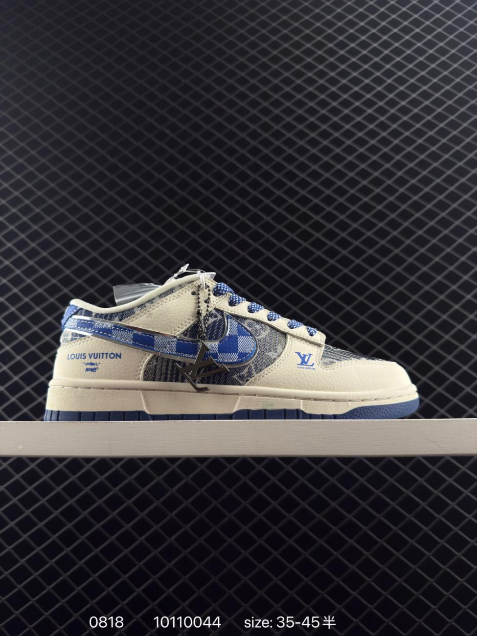 Shoes Sneakers Nike SB Dunk Low LV Joint Chessboard Pattern Brown Old Flower White Hook Anniversary High end Customization Low top World Best